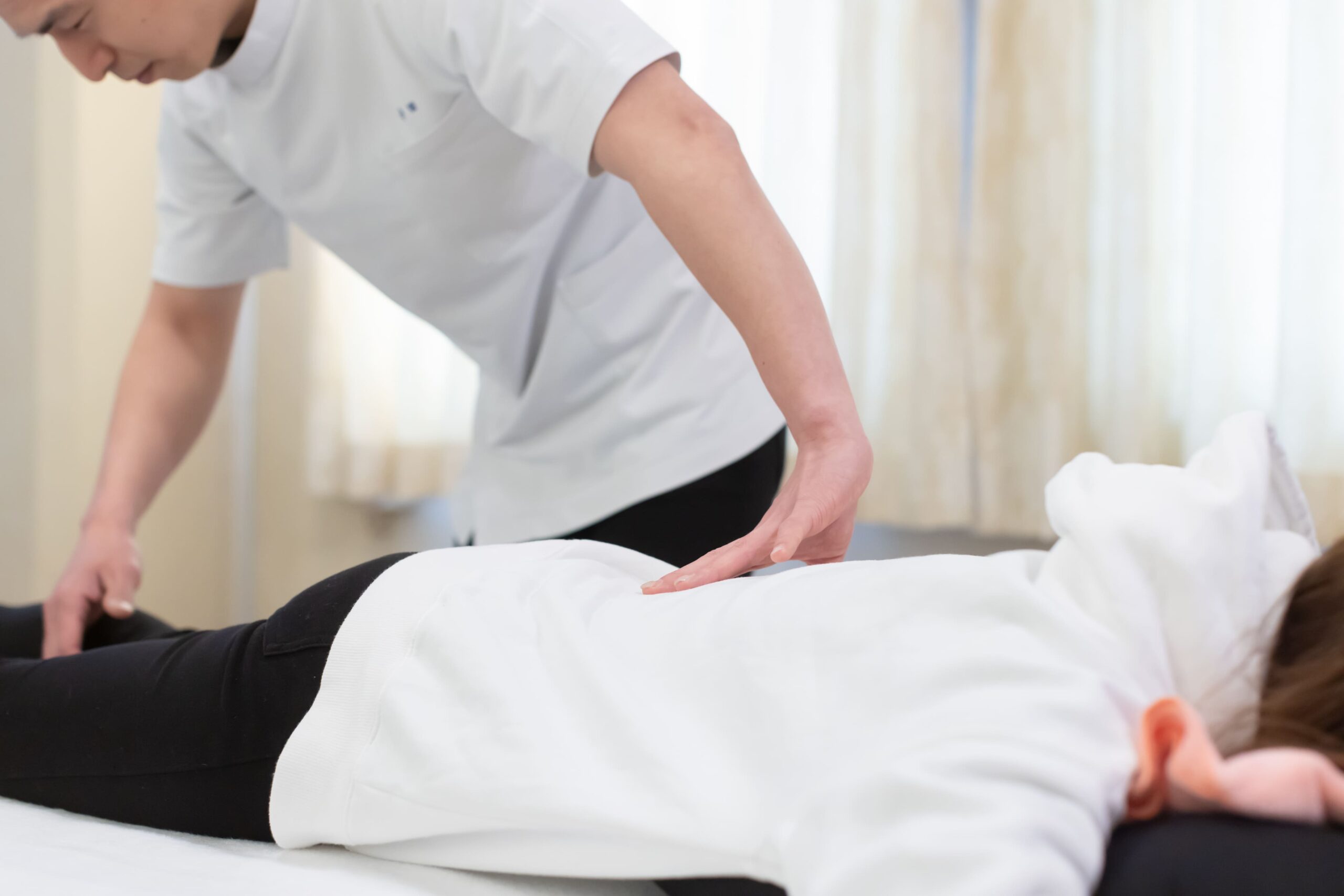 首や肩だけでなく、頭の横(側頭筋)や後ろの「筋膜」を調整します。他院のマッサージとは違い、神経と連動させて筋膜を緩めるため、驚くほど頭が軽くなるのを実感いただけます。