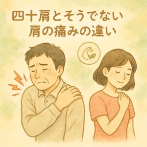 肩の痛みは、40代〜60代の女性に多く見られます。特に**四十肩・五十肩(肩関節周囲炎)**は、放っておくと何ヶ月も痛みや動かしづらさが続くこともあります。